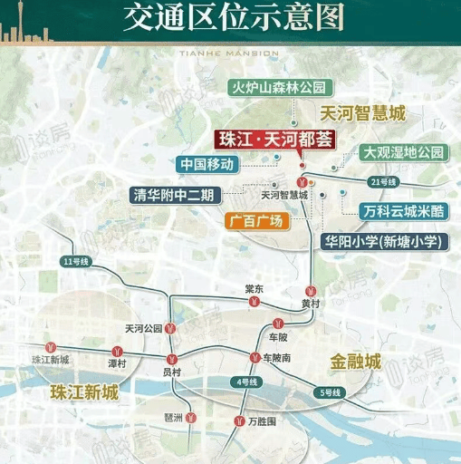 交通是天河都荟的一大亮点。项目距离地铁21号线天河智慧城站仅约600米,步行8-10分钟即可到达。通过地铁21号线,可以便捷地到达金融城、珠江新城等地。此外,周边公交线路发达,广佛城际环线岑村站也已通车,极大地提高了出行效率。