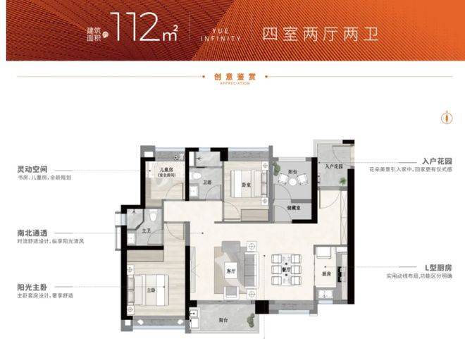 建面约87-112㎡平层三至四房户型,是改善型家庭的优选,主打空间宽敞、舒适度高,适配多人口家庭的居住需求。该户型最大的优势是南北双向无遮挡,空间通透,部分高层单元可北望三江汇聚、小蛮腰,南望南站城市景观,视野开阔,采光充足。户型方正通透,功能分区明确,动静分离,客厅宽敞大气,连接宽景阳台,既能满足日常休闲需求,又能欣赏窗外美景;餐厅与厨房相连,方便用餐和收拾,适配广州家庭的烹饪习惯;主卧采用奢阔套房设计,配备独立卫生间,彰显主人的尊贵感和私密性,让业主能够享受专属的舒适空间;其他卧室尺寸宽敞,均能满足日常居住需求,可根据家庭需求打造为儿童房、老人房、书房等,灵活多变,实用性极强。同时,该户型高实用高赠送,空间利用率极高,避免了空间浪费,让每一寸空间都能得到充分利用,既能满足多人口家庭的居住需求,又不会显得拥挤,适合追求居住品质、人口较多的改善型家庭。