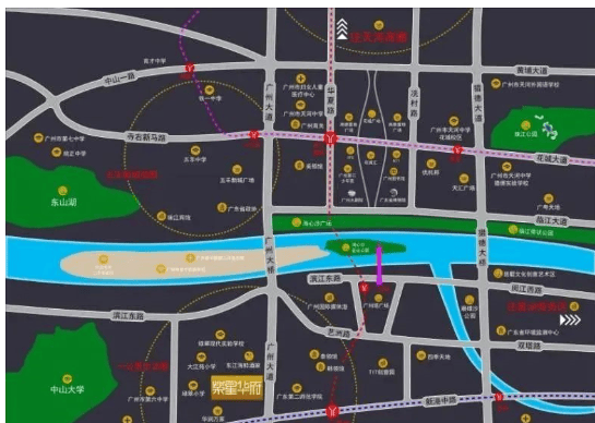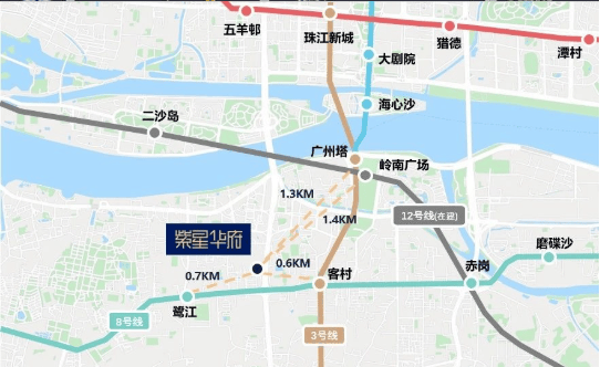 紫星华府坐落于海珠区广州大道南430号,地处客村立交桥南侧,紧邻广州塔与琶洲会展板块,地理位置极为优越。项目距离地铁3号线与8号线交汇的客村站仅约700米,步行约8-10分钟即可抵达。搭乘3号线,5站直达珠江新城;换乘8号线,可快速通达琶洲、昌岗、万胜围等区域。此外,滨江东延长线与规划中的双塔路进一步强化了片区与琶洲CBD的连接效率。