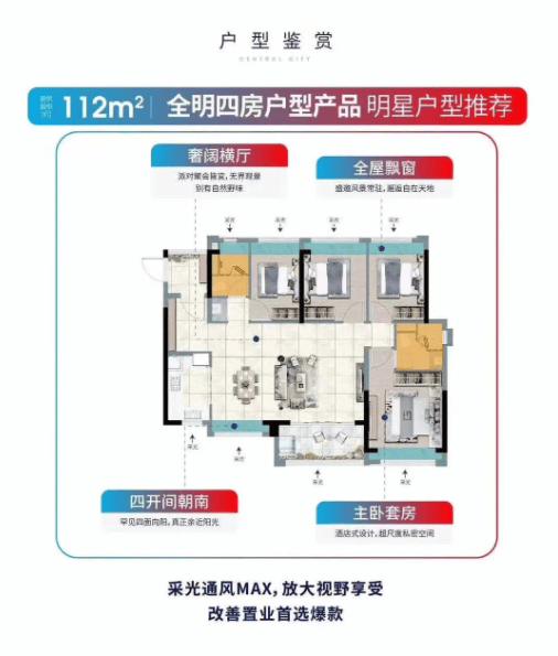 合生中央城目前主推N区与F区,所有在售房源均为2025年6月精装交付的准现房,真正做到“所见即所得,签约即安心”。项目提供从85㎡到112㎡的多种户型,覆盖刚需、刚改及多孩家庭的不同需求。