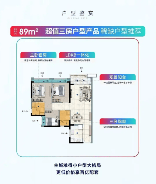 建面约89㎡ 三房两卫|总价约231万