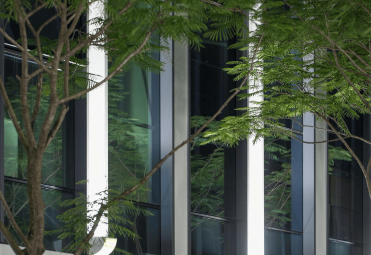 通过局部架空,下沉庭院等形式,将建筑与景观完美融合;通过水平与垂直设计相结合的方式,打造园区立体式的花园样貌,令建筑的景观层次更丰富,在绿植的衬托下,激发出办公空间的活力感和时尚感。