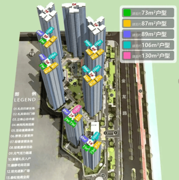 珑曜上城一期主推建面约73㎡至130㎡的四至五房产品,以“小面积大空间”为核心设计理念,实用率高达130%,远超市场平均水平。所有户型均做到至少四开间朝南,采光通风优异,并标配入户花园,提升归家仪式感与生活情趣。