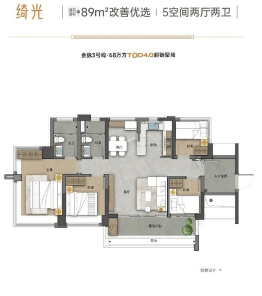 高实用率精装户型,130%空间魔法满足全家庭需求