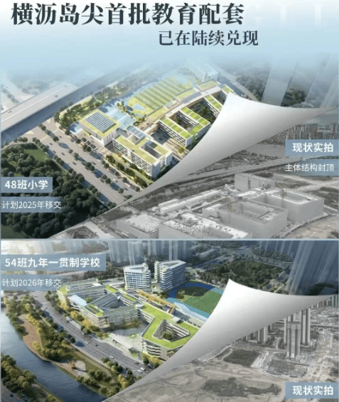 横沥岛上规划有多所优质学校,包括3所小学、3所九年制学校、1所十二年制学校和1所国际学校。其中,距离项目约500米处正在建设一所54班的九年制学校,预计将于2026年投入使用。这些教育资源为居民提供了丰富的选择,确保孩子能够接受高质量的教育。