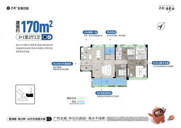 保利·领秀海位于广州番禺区南大干线旁,项目紧邻珠江入海口狮子洋,享受一线270°滨海环幕景观。项目占地约14.7万平方米,总建筑面积约30万平方米,规划20栋住宅和四处商业综合体,形成大型宜居型滨海社区。依托央企保利雄厚实力打造,项目在建筑品质、景观设计及社区配套上均达到高标准,结合滨海自然资源与城市生活便利,为业主提供高端舒适的滨海居住体验,是改善型家庭及投资者的理想选择。