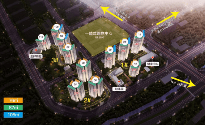 商业配套方面,项目约 600 米范围内分布着嘉福商业广场、万民百货等商业体,涵盖超市、餐饮、服饰、娱乐等多种业态,可满足居民日常的购物、餐饮、休闲需求。白云湖数字科技城板块未来还规划有超大型商业综合体,待落地后将进一步丰富区域的商业形态,提升生活便利性。