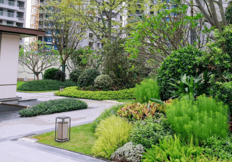 因地制宜、适地适树,以乡土树种为主,充分满足生态要求,同时控制成本。以人为本、自然造园,考虑人与植物关系,为人所用,亲切近人。打造多样植物空间,注重植物层次色彩,景观精致化打造。