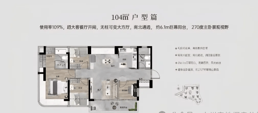 项目主打 80-132㎡三至四房,使用率最高达 110%,所有户型均为全南向设计,部分户型东南 / 西南向看旧羊山公园景观,亮点十足:80㎡三房两厅两卫(使用率 107%,四开间南向,12.6 米超大面宽,主卧 270° 弧形玻璃幕窗);93㎡四房两厅两卫(使用率 109%,独立入户玄关,南北通透,四面宽视野);96㎡四房两厅两卫(使用率 100%,5.7 米面宽瞰山阳台);100㎡四房两厅两卫(使用率 109%,6.1 米巨幕阳台,南北通透)。楼栋排布扭转 45° 角,四边位采光,前后无遮挡,确保每一户都能享受充足阳光与山景视野。