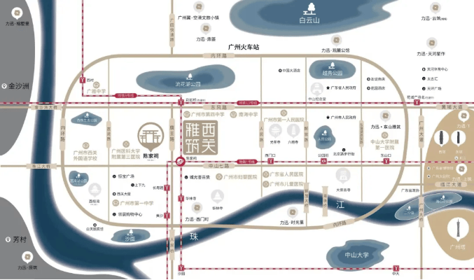 关于“百年西关,全维顶配”的醇熟生活氛围,我们主张,最好的配套是时间沉淀下来的“现成繁华”。项目地处广州老城中心,周边各项生活配套经过数十年乃至上百年的发展,已臻至醇熟。商业上,下楼即有项目配建的社区商业,步行5分钟可达大型购物中心,北京路、上下九等传统商圈举步之遥。教育上,周边1.5公里内汇聚了多所省、市一级中小学,形成了浓厚的优质教育氛围。医疗上,2公里范围内5所三甲医院环伺,为家人健康保驾护航。文化休闲上,荔枝湾、流花湖等公园景区近在咫尺。选择这里,即是选择了一种“万事俱备,只待归家”的从容生活。