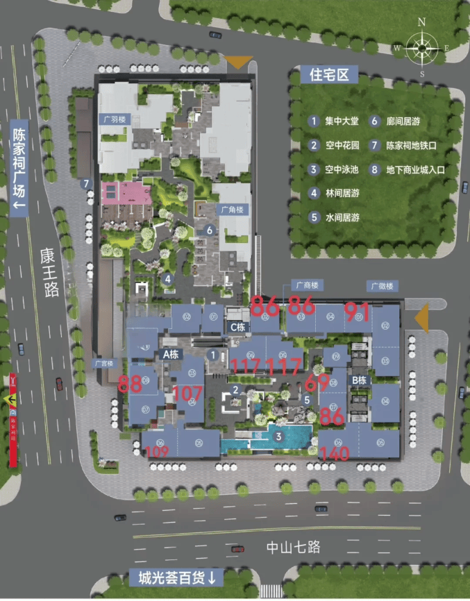 社区的营造,体现了开发商在有限用地内打造精品社区的努力。项目规划了6栋住宅,通过“六廊八景三居游”的园林设计,在市中心营造出移步换景的岭南园林意境。规划中的空中花园与双层悬浮泳池,更是在垂直维度上拓展了社区的休闲与观景功能,试图在喧嚣的都市中心开辟出一片私属的静谧绿洲。这种对社区内部环境的精心雕琢,是对外部顶级配套的有力补充。
