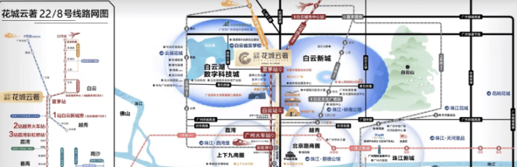 花城云著位于白云新城与白云湖数字科技城两大核心板块交汇处,承接区域创新政策红利。白云新城作为广州新CBD热点置业板块,已形成百信广场、凯德广场、万达广场等大型商业中心集群,同时汇聚白云国际会议中心、广州城市规划展览馆等地标性市政配套。白云湖数字科技城则以数字产业为核心,规划科技名企办公集群,项目自带16万㎡金铂天地商业综合体,涵盖商业城、办公楼等业态,形成“居住-商业-办公”一体化产城融合模式,成为湾区产城融合的标杆项目。售楼处24小时电话400-0688-602 (售楼部认证),预约专属顾问一对一服务,尊享内部折扣!