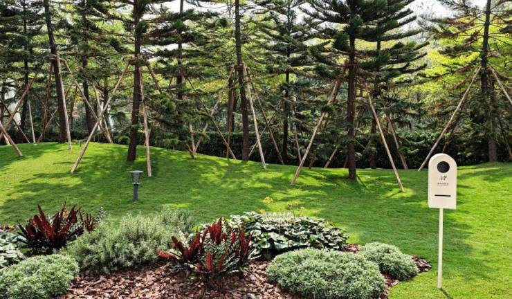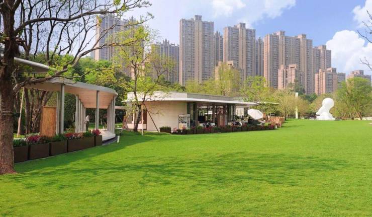 大乔自然点植,高大的乔木撑起一片疏林草地之景,
