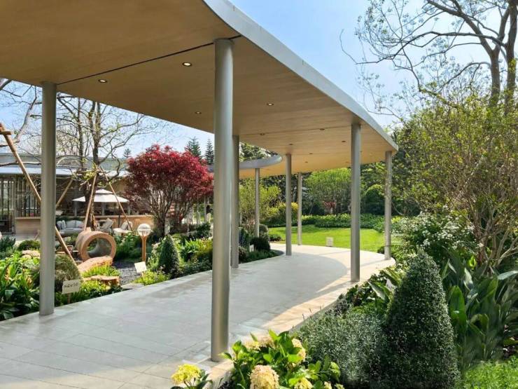 向外延展的如茵绿毯与四季轮转的花境走廊尽收眼底,
