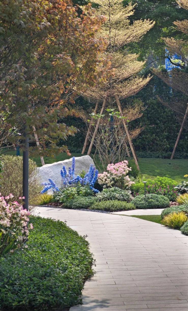 搭配出彩的花境与蜿蜒穿行的林荫步道,