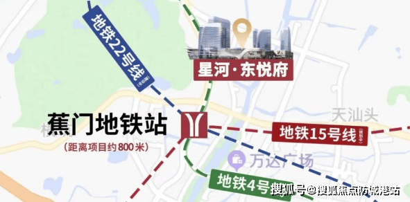 A:项目距地铁4号线蕉门站仅610米,未来三轨交汇(4号线、15号线、22号线南延段),2站直达庆盛高铁站,42分钟通达香港西九龙,自驾20分钟可达番禺万博CBD。