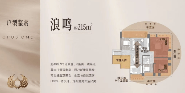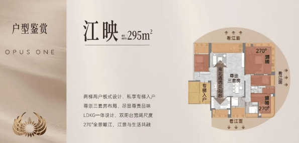 295㎡五房:顶奢江景大平层,适合大家庭居住。