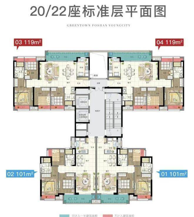 119㎡四房:适合改善型家庭,四房设计可满足三代同堂或二孩家庭的居住需求。户型方正,南北通透,通风采光俱佳。客厅与餐厅一体化设计,营造出宽敞大气的公共活动区域,无论是家庭聚会还是宴请宾客都能轻松应对。四间卧室布局合理,动静分区,互不干扰。主卧空间阔绰,配备独立卫生间和衣帽间,提升居住品质感。次卧和其他房间尺度适宜,可根据家庭成员的特点进行合理规划,如儿童房可打造趣味空间,书房可营造安静的学习办公环境,满足家庭全生命周期的不同需求。