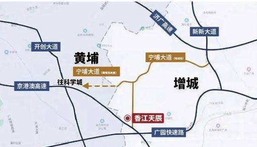 香江天辰位于增城区东达路与永达路交叉口东北360米,地处广州东TOD核心区。项目周边交通路网发达,具备两纵三横的道路体系:开创大道、宁埔大道贯穿区域,广深高速、广园快速、广深大道等主干道形成快速通达市区的通勤通道。居民可自驾或乘坐社区楼巴,高效连接黄埔、天河、科学城及珠江新城核心区域,实现城市核心区快速通勤。