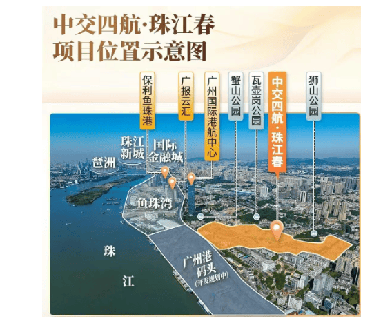 地段的价值,决定了资产的天花板,而中交四航·珠江春所占据的,正是广州第二CBD——鱼珠临港经济区的“心脏”位置。这里并非边缘地带,而是老黄埔最靠近天河金融城的节点,距离金融城核心区仅约1公里,是“珠金琶”黄金三角中至关重要的一极。随着广州国际港航中心、广汇云报、保利鱼珠港等超100个总部项目的落地,近6000亿的巨额投资已将这里打造成为广州向东发展的最强引擎。在交通方面,项目坐拥多维立体的路网体系。虽然距离地铁5号线鱼珠站和大沙地站有一定步行距离,但项目紧邻中山大道与黄埔大道两条城市主干道,且临江大道东延线、鱼珠隧道等超级工程正在紧锣密鼓地建设中。一旦这些交通动脉全面打通,项目将实现与珠江新城、金融城、琶洲的无缝融合,车程仅需数分钟。此外,5号线与13号线二期双地铁加持,让业主能够轻松畅达全城,享受真正的CBD生活圈。