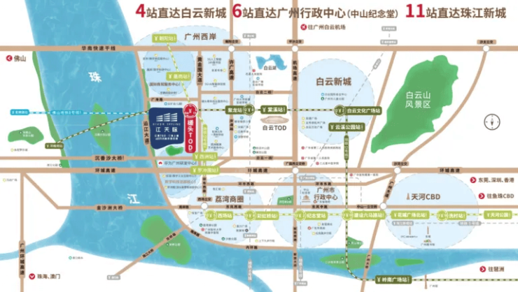 交通是城市生活的命脉,也是楼盘价值的核心支撑。五矿招商江天际最大的优势之一,就是其得天独厚的交通区位——位于地铁12号线与13号线二期交汇的槎头站上盖,未来还将衔接规划中的佛山地铁8号线,形成广佛双城通勤枢纽,真正实现“家门口的地铁”。