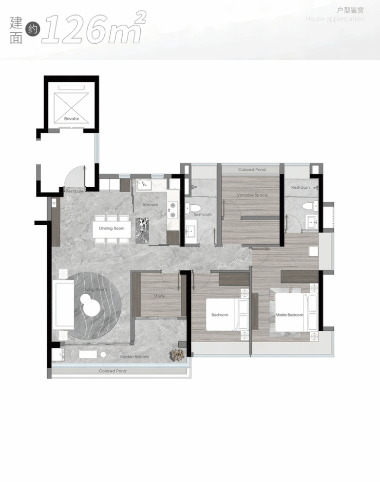 有全系统豪华主卧,宽敞的休息区域,融入独立卫浴和270°环幕转角飘窗。