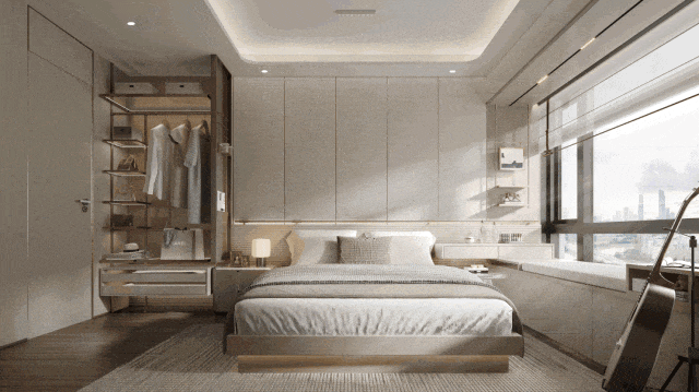 这样的配置,在豪宅级别的项目见过。住在这里,每天被阳光唤醒,坐在飘窗上看书赏景,惬意十足。