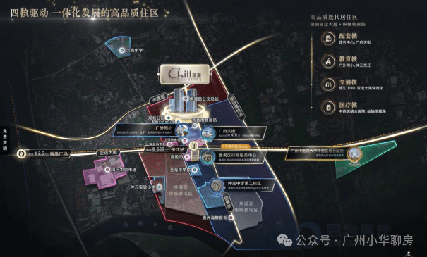 核心卖点二:区府新城核心区位,执掌城市发展红利。项目选址番禺区府新城板块,作为旧区府板块的迭代升级之作,汇聚政务、商业、教育、医疗等优质资源,土地资源稀缺,未来发展潜力巨大;紧邻番禺广场TOD,占据板块核心优势,优先享受区域发展带来的各项红利,实现居住品质与资产价值的双重提升。