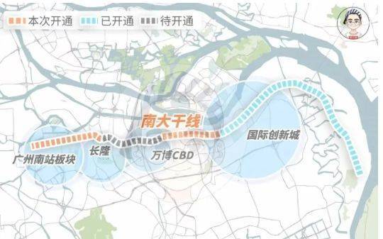 干线优势:南大干线预计 2023 年全线贯通,双向 6 - 8 车道,不设红绿灯,限速 80km/h,并接驳新化快速,可快速畅达广州主城区。10 分钟可达国际创新城,15 分钟抵达万博 CBD 商圈,25 分钟前往广州南站商业区。