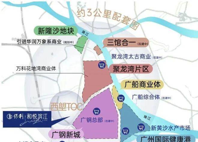 商业配套正在逐步兑现。项目距离山姆会员店开车只要8分钟,这个距离对很多家庭来说已经非常友好,周末采购、囤货都方便。日常买菜有荔塱市场和广百广场,基本生活需求能就近解决。更大体量的商业未来可期,广钢总部、广船综合体、白鹅潭华润万象城、聚龙湾太古里系商业都在规划或建设中,区域整体商业能级会持续抬升,居住体验也会越来越有质感。
