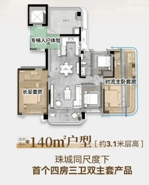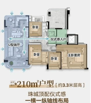 其中,南地块板楼主力户型为120-210平方米四房,楼间距最宽处超过70米,确保通风采光及景观最大化。特别推荐的户型包括:
