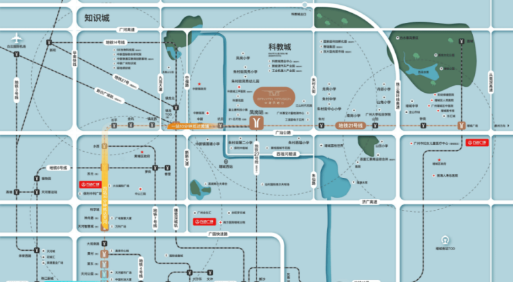 项目自身配备了一所18班公立幼儿园,并对口保利水木配建的公立24班科教城小学,已于2023年9月开学。中学方面,对口学校为朱村中学,该校已纳入增城广附教育集团,享有丰富的教学资源和先进的教育理念。此外,未来还将有广州外国语学校(增城校区)落户于广州科教城中轴线东侧,规划为60班完全中学,进一步提升区域内的教育资源质量。
