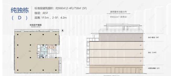 D 栋独栋总部共 5 层,1 层 5 米层高,2 - 5 层 4.2 米层高,2 - 4 层面积 960㎡,5 层面积 758㎡,整栋销售。作为科技金融企业的独栋总部,其稀缺性高,纯独栋的设计为企业提供了独立的办公空间,有助于企业树立独特的品牌形象。科技金融企业对办公环境的安全性、专业性有较高要求,D 栋独栋总部的设计与定位恰好满足了这些需求。