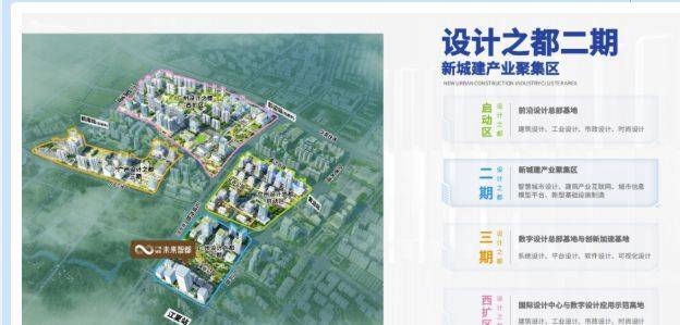 产业方面,设计之都二期打造前沿设计总部基地(涵盖建筑、工业、市政、时尚设计等)以及数字设计创新加速基地(包括系统、平台、软件设计等),形成完整