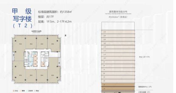 T2 栋甲级写字楼共 17 层,1 层 5 米层高,2 - 17 层 4.2 米层高,标准层面积 1358㎡,以散售的方式面向市场。方正实用的空间布局,使得企业在办公空间规划上更加灵活自由。作为智慧能源总部,该写字楼将吸引相关领域的企业聚集,形成产业协同效应。无论是新兴的能源科技企业,还是在能源领域深耕的成熟企业,都能在这里找到合适的发展空间。