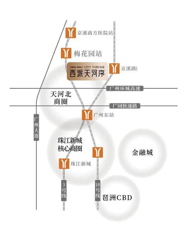 交通方面也非常友好。项目直线距离地铁3号线梅花园站仅约200米,3号线作为广州南北向主动脉,5站就能直达珠江新城,通勤效率很高。同时项目紧邻广州大道主干道和环城高速,无论是去珠江新城、海珠、天河其他片区,还是跨区到番禺、南沙、白云,都相对顺畅,基本能覆盖广州主要生活圈。