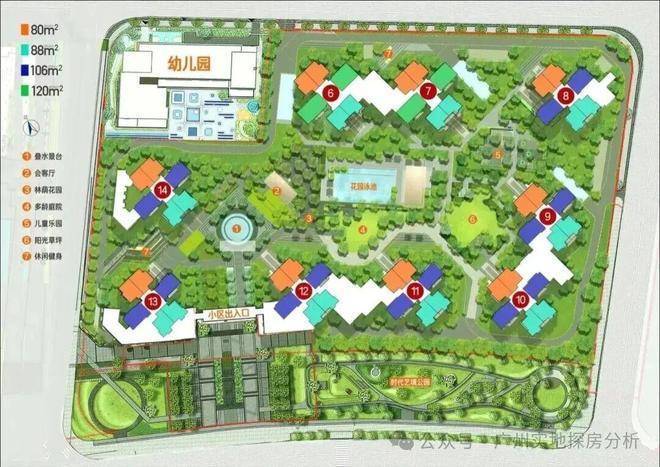 户型设计走实用路线,主打建面80-122㎡的三到四房,选择比较灵活。80㎡和88㎡的三房适合小两口或者三口之家,空间分配紧凑但不憋屈。106㎡和122㎡的四房更适合多代家庭或者有二胎打算的,客厅开间大,餐厅独立,全飘窗让采光通风都在线。动静分区清晰,主卧和次卧分离,生活私密性有保障。得房率基本落在80-85%,实际使用面积很扎实。