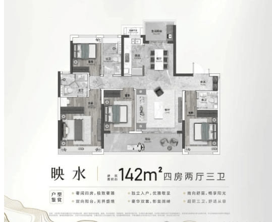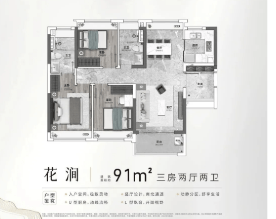 其四,户型设计科学合理。涵盖91-168㎡三至四房,以南北对流、大阳台、双主套等设计为主,注重采光和空间实用性,部分户型可改造性强,适合不同家庭需求。