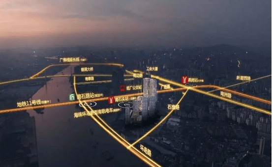 项目位于海珠区广纸新城板块,地处珠江畔,占据城市核心区位。交通出行极为便捷,双地铁环绕:距广佛线燕岗站约 500 米,向西直达佛山,向东可接驳 2、3 号线,快速抵达珠江新城、白云新城;地铁 11 号线南石路站(在建)就在项目楼下,未来开通后将串联 5 大中心区,途经广州东、琶洲等商务区及广州火车站、广州东站两大枢纽,上班通勤与商务出差轻松解决。周边商业氛围浓厚,乐峰广场、江南西、太古仓等五大商圈环绕,日常购物、餐饮、娱乐需求一站式满足。