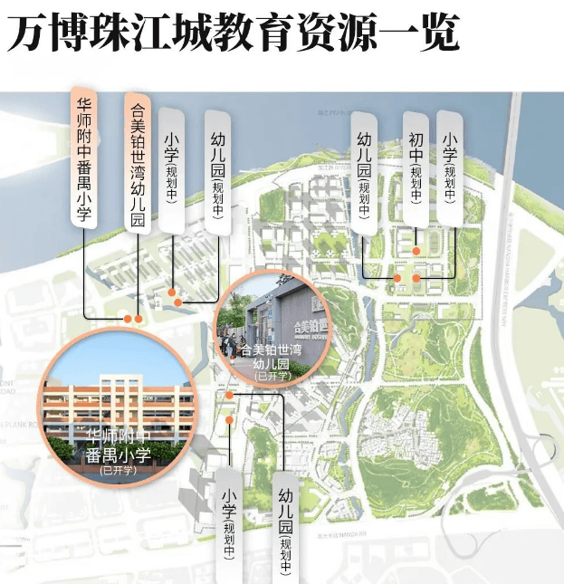 项目内共规划有9所中小幼学校,包括家门口的24班华师附中番禺小学和12班公立合美铂世湾幼儿园(已开学),确保孩子在家门口就能享受优质教育。虽然目前初中方面没有特别出色的学校,但随着项目的不断建设和发展,未来有望引入更多优质教育资源。