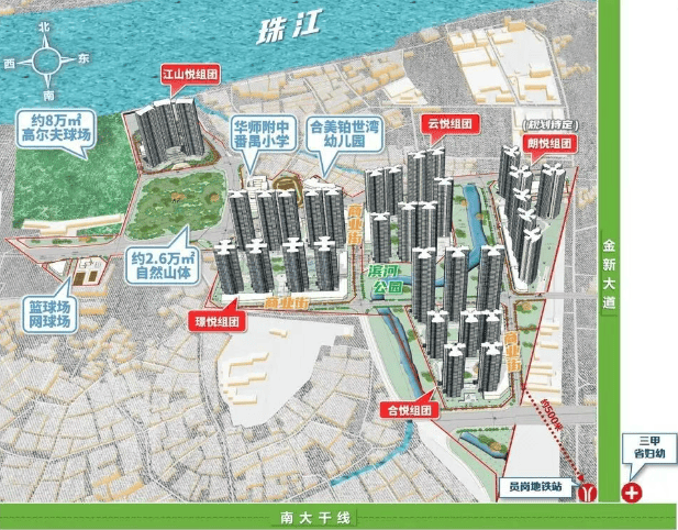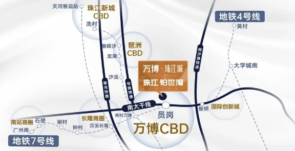【万博珠江城】靠近地铁7号线员岗站,步行距离约为550米,方便快捷。从这里出发,一站可达7号线与18号线交汇的南村万博站,进一步提升了通勤的便利性。驾车出行同样便捷,经由南沙港、新光、华快等快速路,可以迅速到达琶洲、珠江新城等地。周边还有多条主要道路环绕,如南大干线,极大地提高了出行效率
