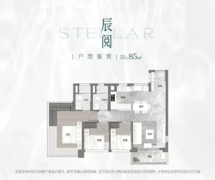 南北双阳台,主卧套房带独立卫浴;