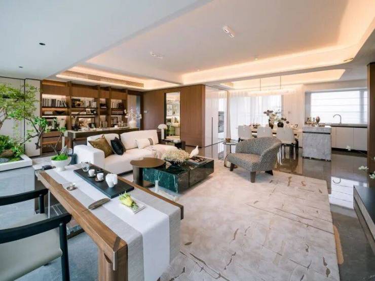 LDKB一体化宽厅,打破传统空间界限,让烹饪、用餐、休闲、阅读自然融合,增进家人间的互动交流。
