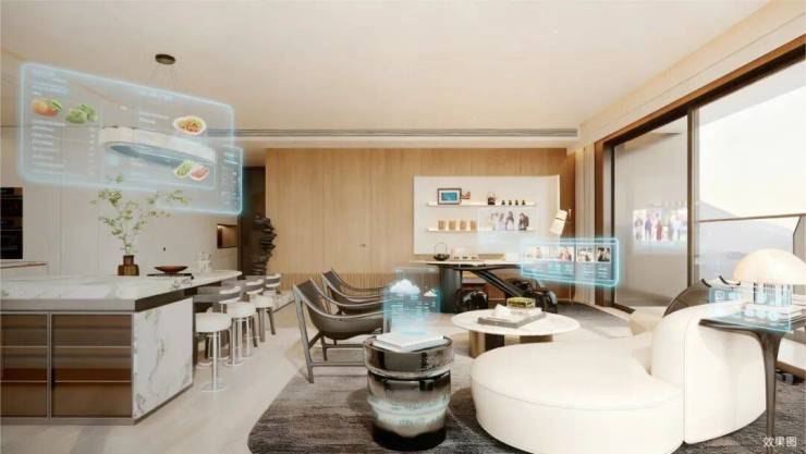 室内层高约3.5米,部分户型提供超60平方米的可拓展空间,这是粤海·云上在空间灵活性上的关键设计。该区域未设承重墙,业主可根据家庭阶段自由改造为书房、儿童活动室、健身房或第二客厅。LDKT一体化布局(客厅、餐厅、厨房、茶厅)打破传统电视中心制,融入独立茶台,使公共区域成为多功能家庭交互场。主卧套间除常规衣帽间与卫浴外,部分户型增设“藏品间”,用于收纳艺术品、腕表等高价值私人物品,回应高端客群对精神收纳的需求。