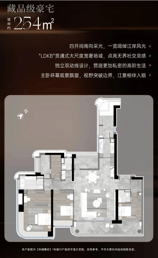 琶洲樾华樾在售户型主要为248㎡、253㎡和330㎡三种大平层,均为四房两厅三卫布局,得房率在同类产品中表现优异,几乎没有冗余过渡空间,整体动线贴合家庭日常使用习惯。