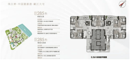 项目在售户型建面约233-285㎡,涵盖四至五房,所有户型均为东向/东南向一线望江,极致3.4-3.6m层高,大幅提升室内空间的通透感与舒适度,让业主在室内就能欣赏到绝美三江汇聚江景,享受极致的居住体验。