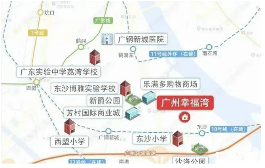 地铁配套:项目目前周边现有地铁1号线西塱站,距离项目大约3.5公里,可便捷换乘多条地铁线路,通达广州各区域;周边还有10、11、22号线(在建中)三地铁交汇,其中距离10号线东沙站仅约600米,该线路预计2024年底开通,开通后将串联天河、白云、越秀、荔湾和海珠区,直接连接广州火车站、广州东站等大型交通枢纽,大幅提升通勤效率,未来业主出行将更加便捷。