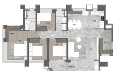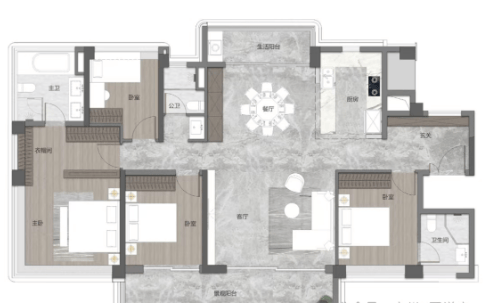 越秀·江湾潮起项目推出了多种户型,包括90㎡至190㎡不等,满足不同家庭的需求。特别是其195㎡大四房户型,阳台长度可达约8米,整个LDK客餐厅面积超过70平方米,两侧观江面加起来长达约16米,为住户提供了极致的居住体验。