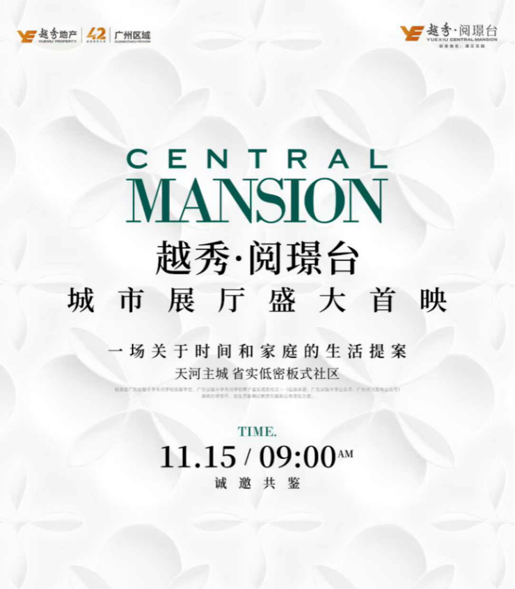 天河改善新标杆来了!越秀阅璟台首发亮相,低密+双名校引爆市场期待