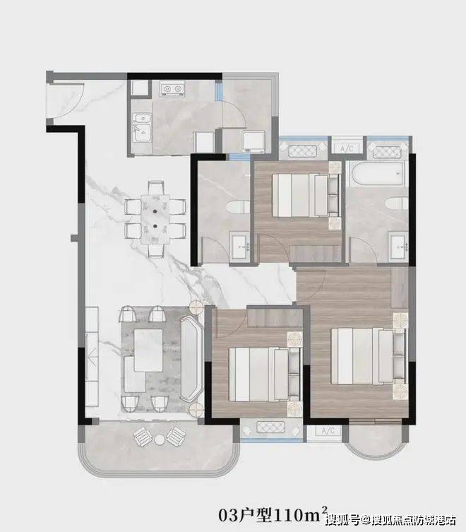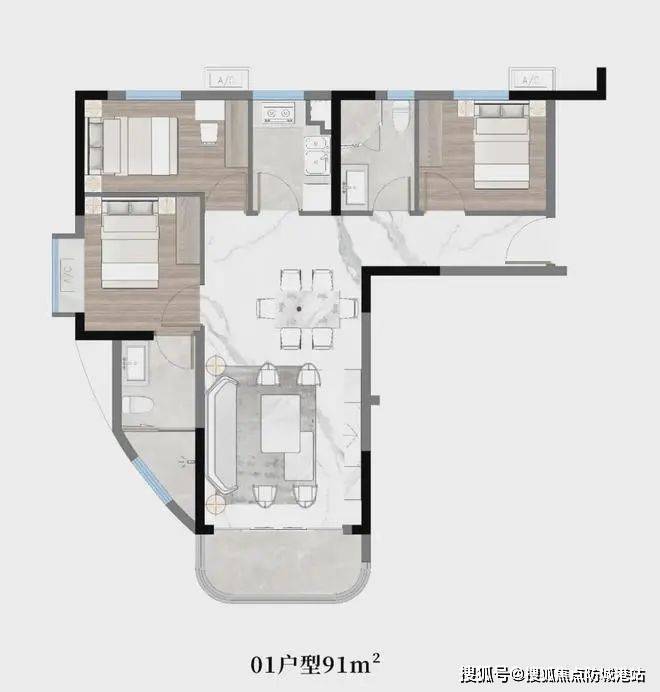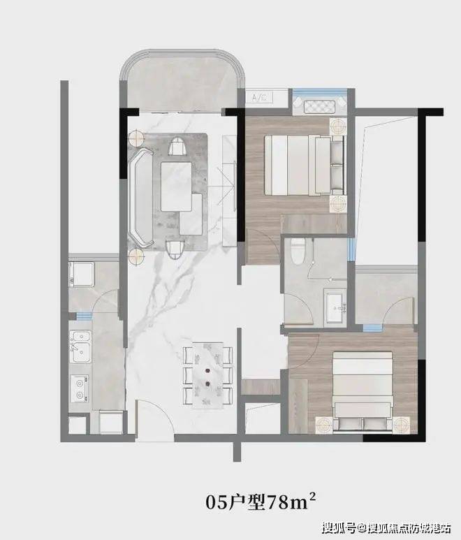 户型设计:78-143㎡三至四房,南北通透,得房率超82%;